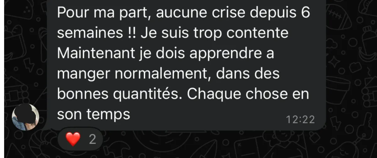 J’ai retrouvé confiance, sérénité et plaisir à manger sans culpabilité, sans lutte permanente.