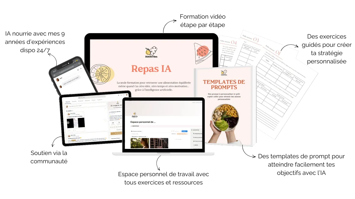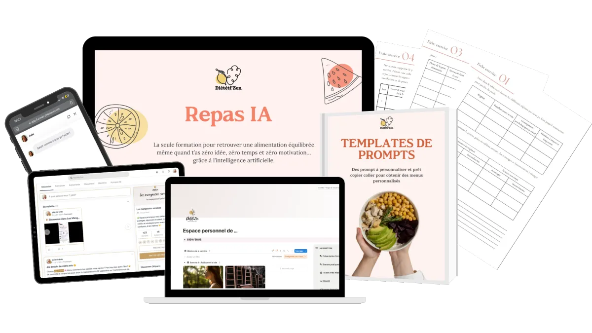 Ici, on ne te donne pas un plan alimentaire rigide ou des recettes toutes faites. Tu apprends à utiliser l’IA pour créer tes propres repas adaptés à ta vie, à ton rythme et à tes goûts. C’est du sur-mesure, pas du copier-coller.