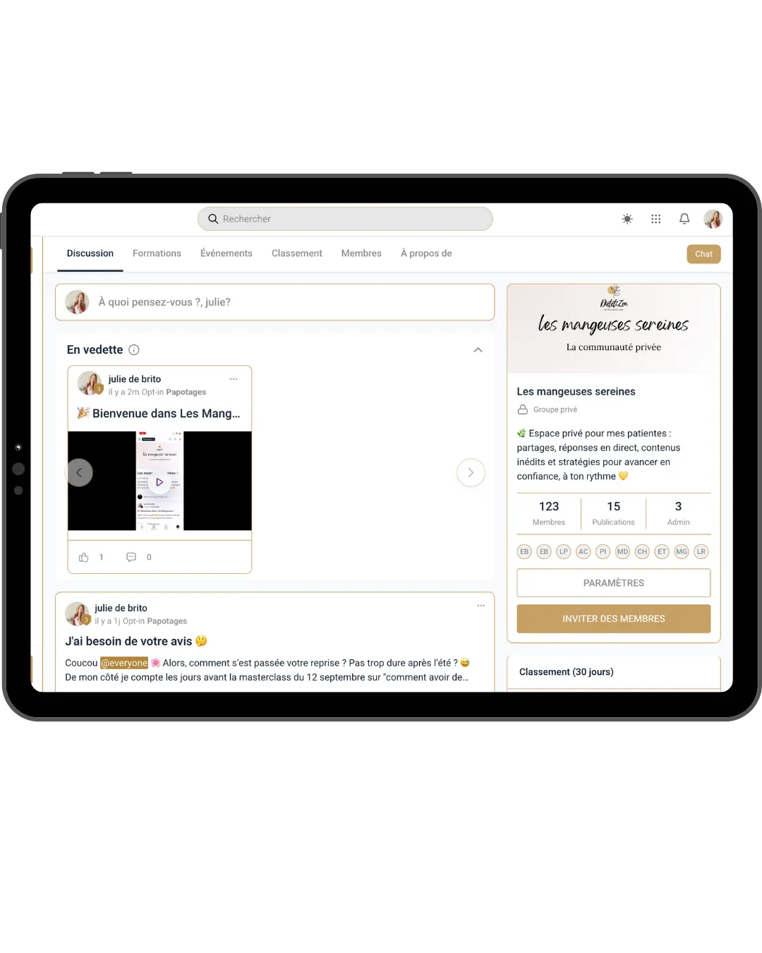 Un espace ou tu pourras partager tes victoires, poser tes questions et recevoir du soutiens de femmes qui vivent la même chose que toi.